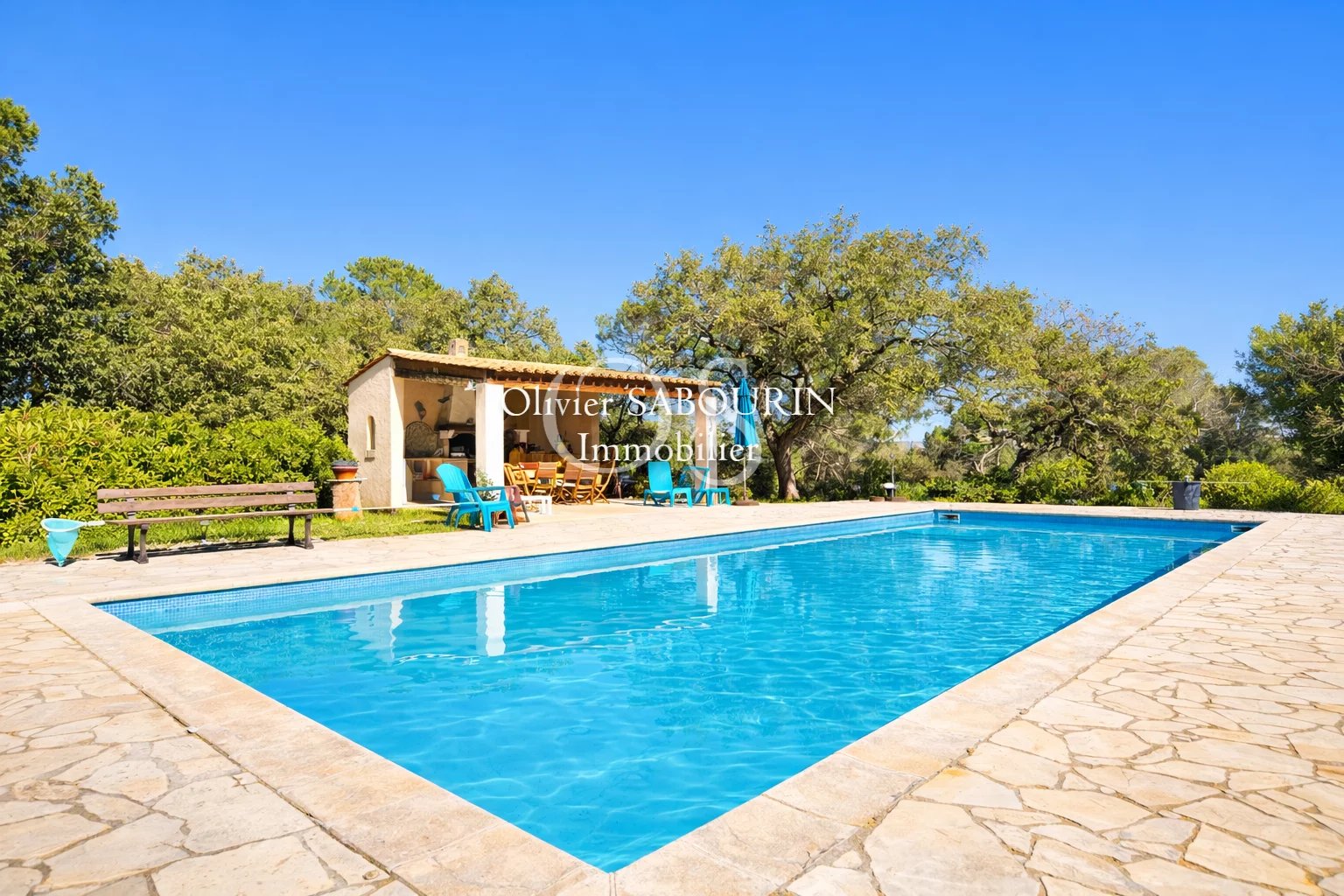Piscine 12 x 6 m avec cuisine d’été.
