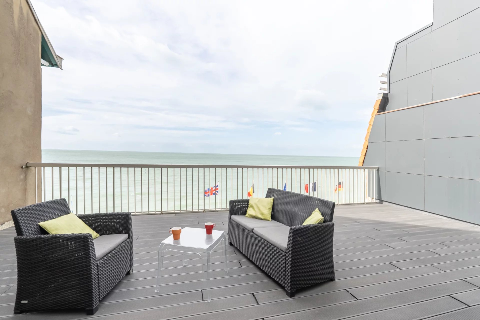 Un balcon privatif desservant deux des chambres vue mer.
