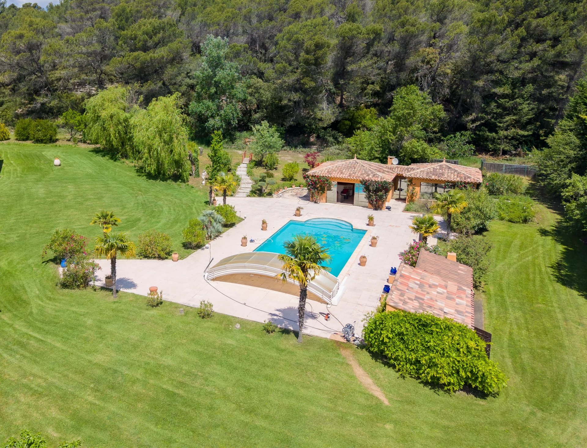 Le jardin est un havre de paix : oliveraie produisant 350 litres d'huile à l'année, verger de 30 arbres fruitiers, potager en permaculture 100 % bio, plus de 250 rosiers multicolores, 2 600 m² de pelouse irriguée efficacement via le Canal de Provence et l’eau de ville, pilotée par 11 programmateurs automatiques.