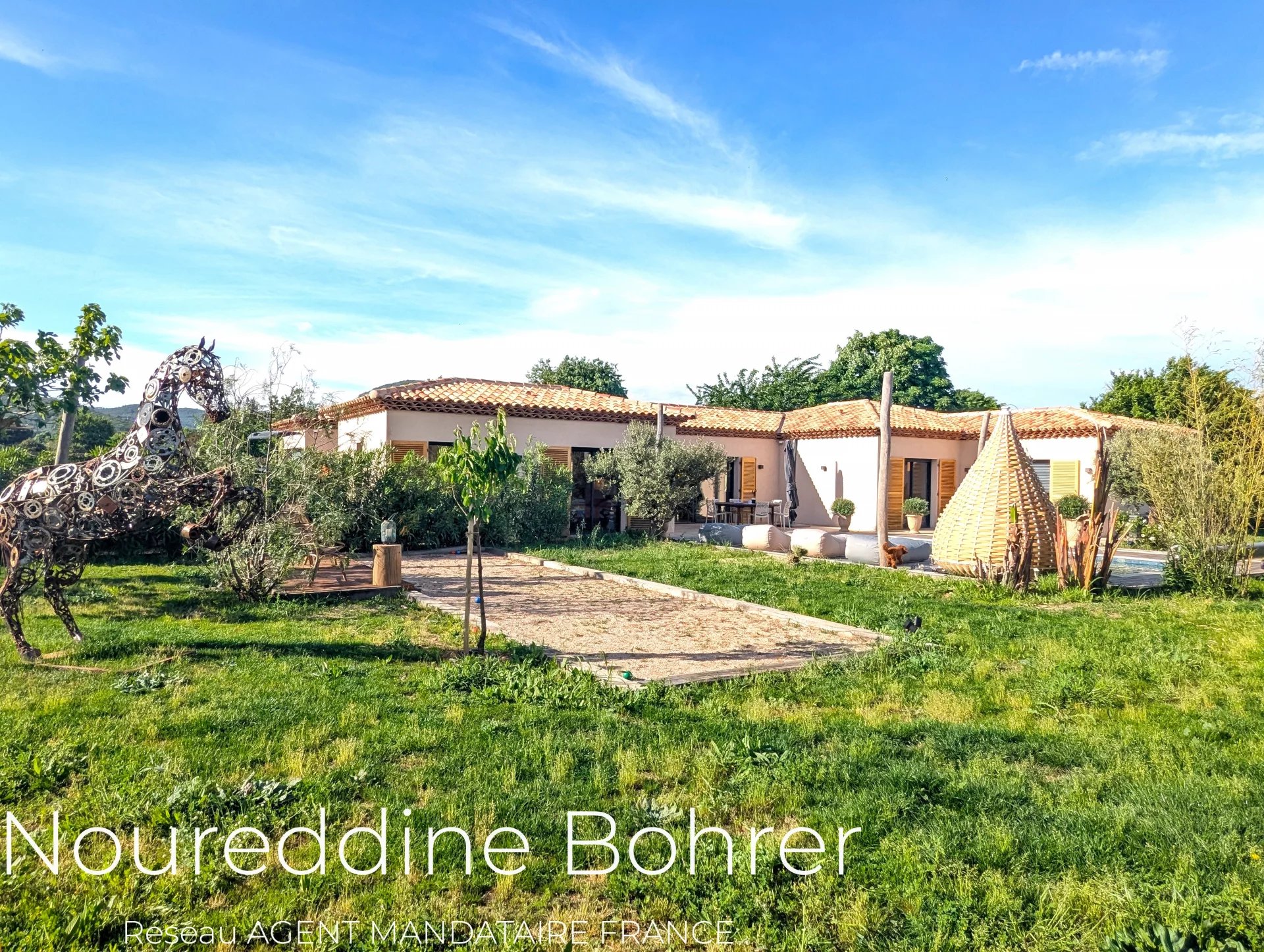 M. BOHRER, vous propose cette villa de rêve alliant modernité et charme provençal, de plain-pied, édifiée en 2024, nichée au cœur d'un environnement verdoyant et privilégié au milieu des vignes.