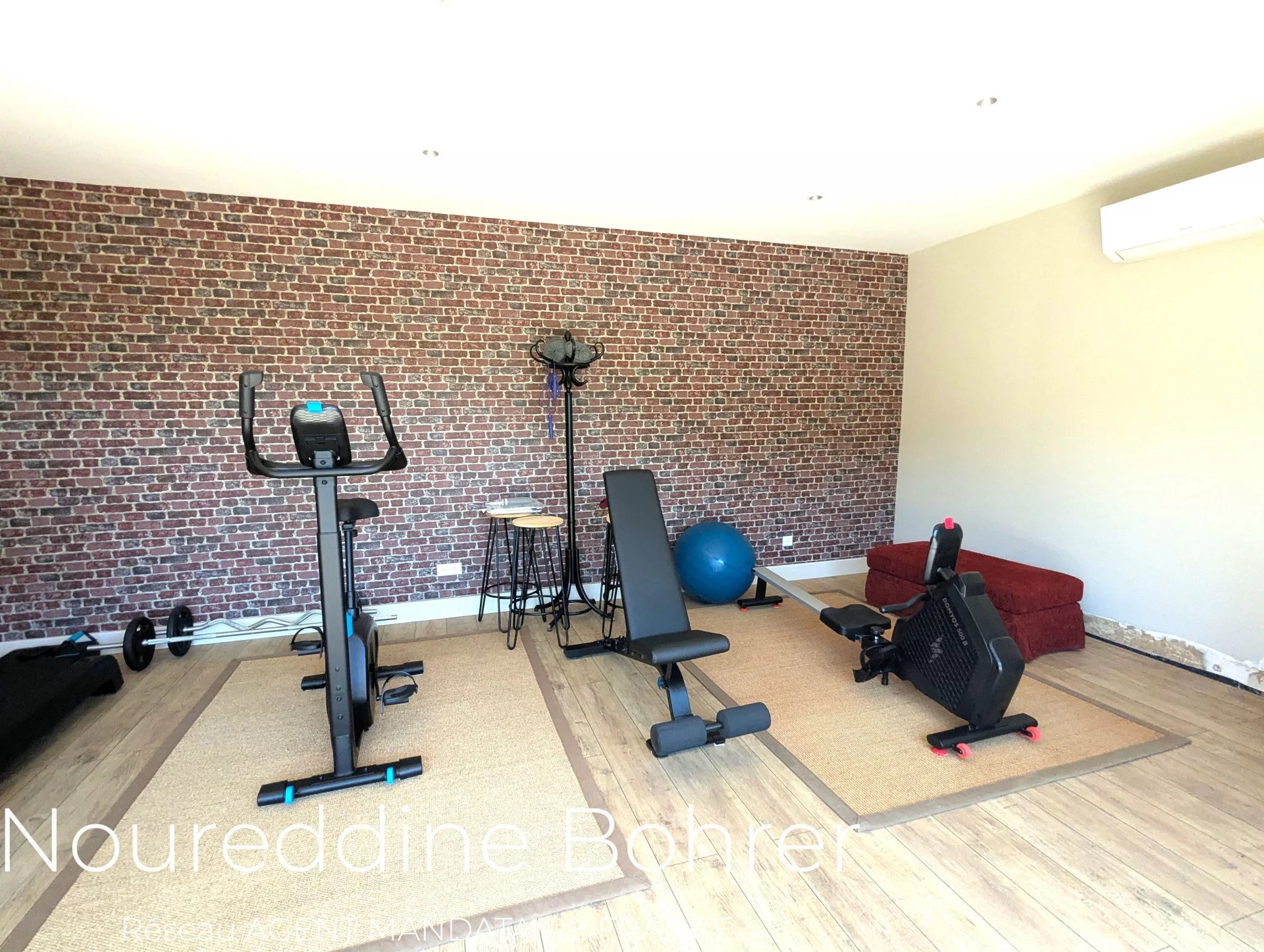 Cette propriété dispose également d’une buanderie fonctionnelle, d’un emplacement pour deux voitures, ainsi que d’une salle de sport indépendante.