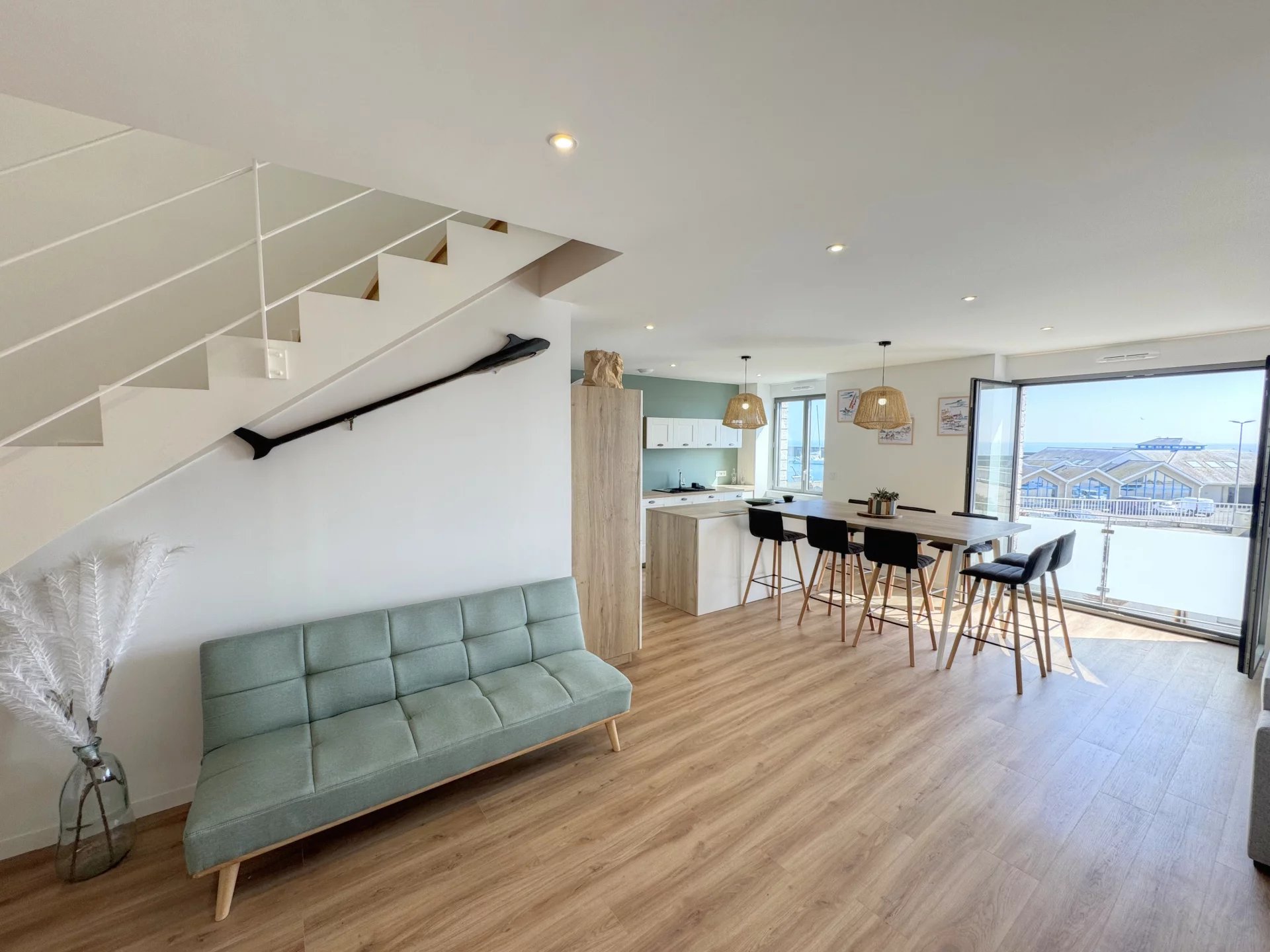 Pensé pour le confort et le raffinement, ce duplex offre une pièce de vie baignée de lumière, ouvrant sur un balcon, idéal pour contempler la mer. La cuisine dînatoire, aménagée et équipée, s'inscrit dans une harmonie parfaite avec la pièce de vie.