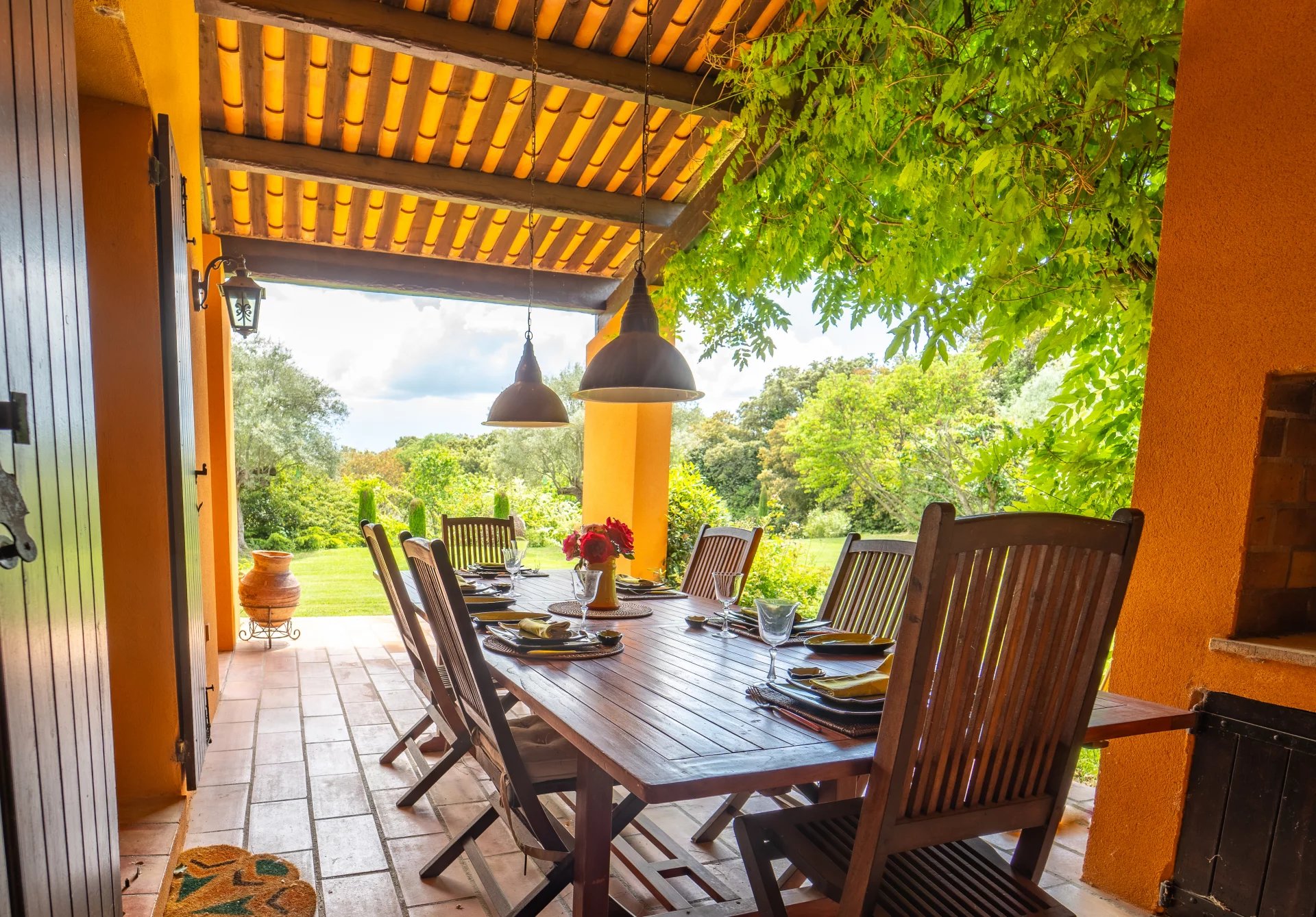 Le jardin est un havre de paix : oliveraie produisant 350 litres d'huile à l'année, verger de 30 arbres fruitiers, potager en permaculture 100 % bio, plus de 250 rosiers multicolores, 2 600 m² de pelouse irriguée efficacement via le Canal de Provence et l’eau de ville, pilotée par 11 programmateurs automatiques.